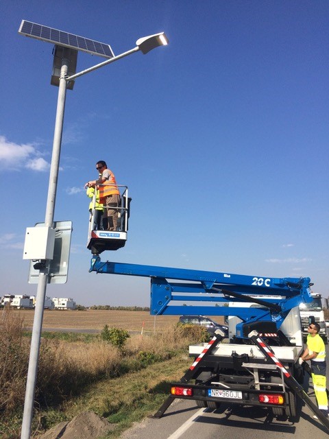 Inštalácia energetický efektívneho ostrovného osvetlenia priechodu pre chodcov vyvinuté EkoSymbiozou, o.z.